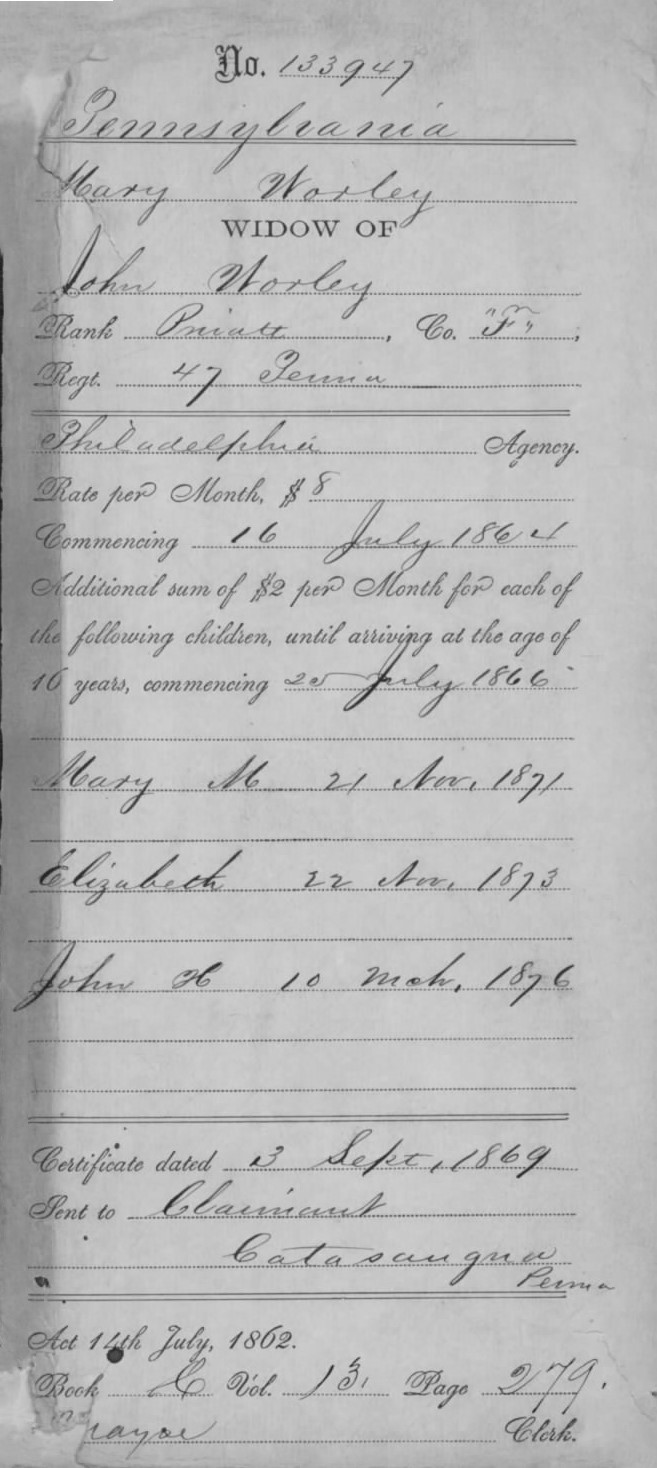 Mary Worley’s U.S. Civil War Widow’s and Orphans’ Pension Award and Amount_pubdom