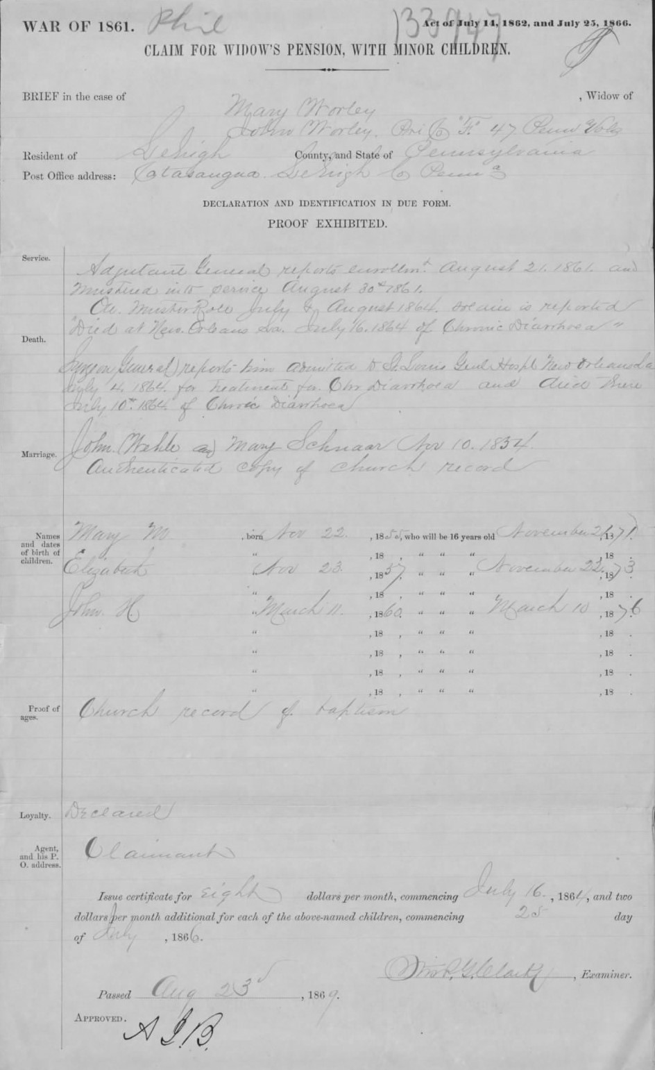 Mary Worley’s U.S. Civil War Widow’s and Orphans’ Pension Claim_original form_pubdom