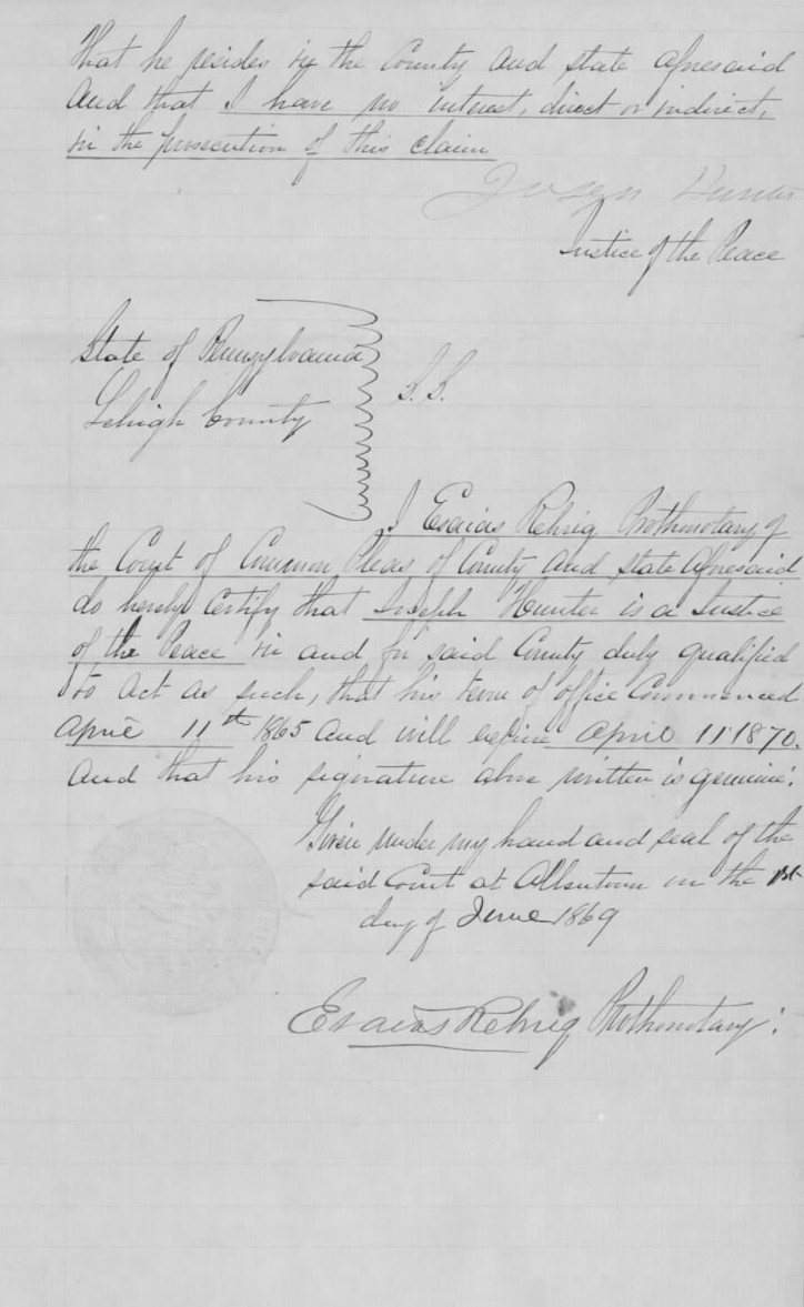 Mary Worley’s U.S. Civil War Widow’s and Orphans’ Pension Claim, Capt. Henry Harte’s June 1869 Affidavit, p. 2