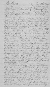 Excerpt from 1868 court petition by Caroline Herman’s father and brother to have her declared incompetent (U.S. Civil War Widows’ Pension Files, U.S. National Archives and Records Administration, public domain; click to enlarge).