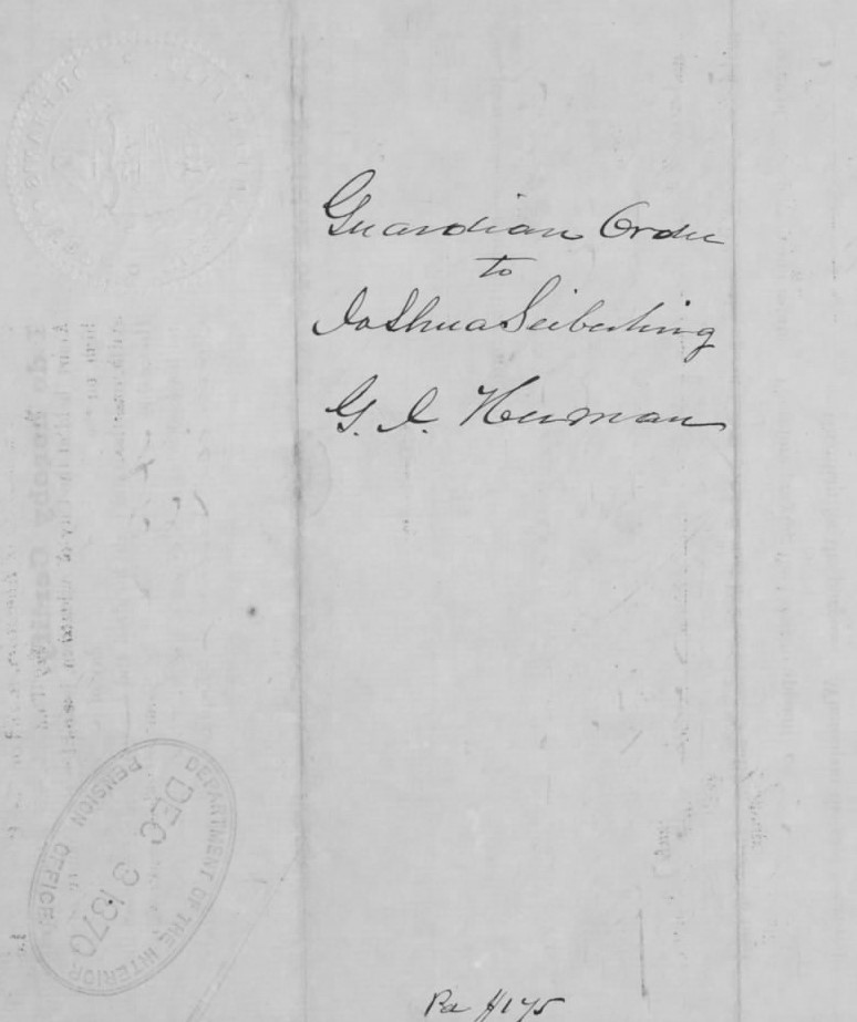 Caroline Herman’s U.S. Civil War Widows’ and Orphans’ Pension Claim (Joshua Seiberling’s appointment as guardian, p. 2, U.S. Civil War Widows’ and Orphans Pension Files, U.S. National Archives and Records Administration, public domain).