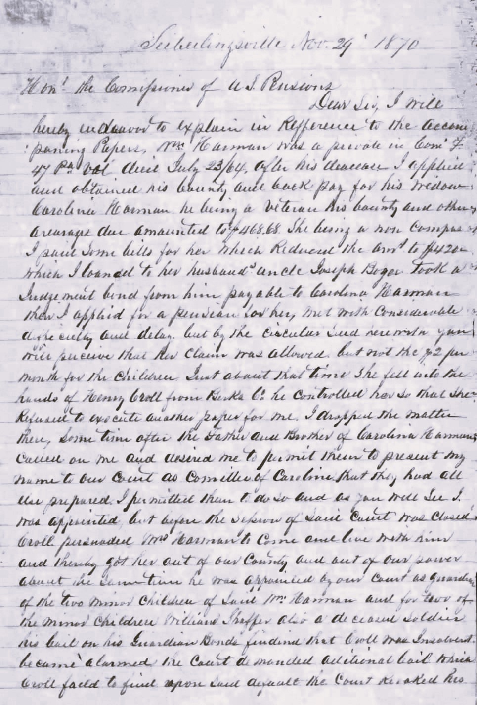 Caroline Herman’s U.S. Civil War Widow’s Pension Claim, Seiberling’s Appt. as Guardian, 1869, pp. 6-7_pubdom