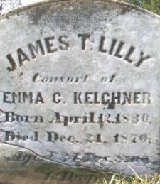 And then just a few short years later, on Christmas Eve of 1870, James T. Lilly also died. He, too, was laid to rest at the Salem Union Church Cemetery. At the time of his passing, he was described on his gravestone as the “Consort of Emma C. Kelchner.”