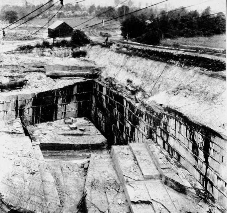 This photo of slate-carving operations at a quarry near Easton, Pennsylvania circa 1930, illustrates how layers of slate were removed from the earth (public domain).