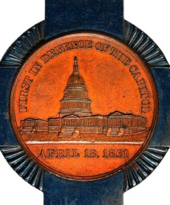 The First Defenders’ Medal, made from gold and awarded to members of the Allen Infantry for their service during the first days of the American Civil War, was created by the U.S. Mint in Philadelphia, and authorized by the Pennsylvania State Legislature in 1891 (public domain).