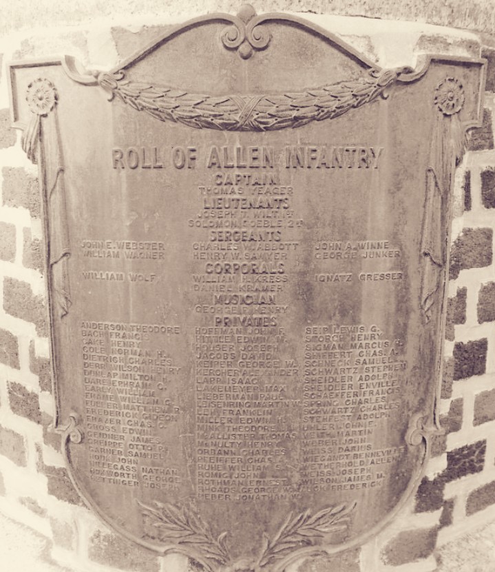 - “Allen Infantry — Anniversary Reunion.” Allentown, Pennsylvania: The Allentown Democrat, 22 April 1891.