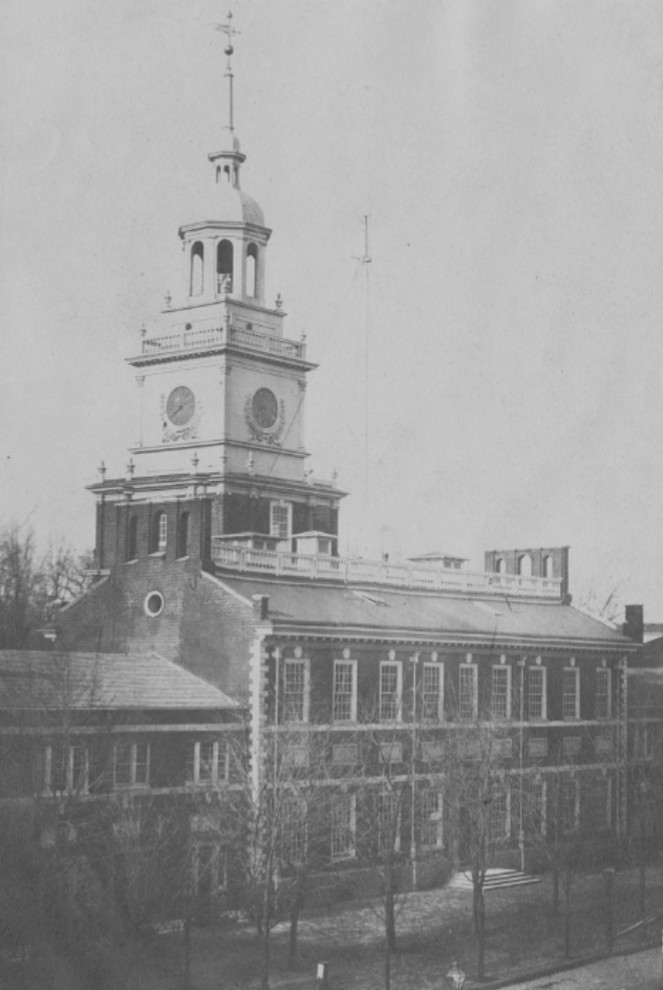 Independence Hall, looking northeast, Philadelphia, Pennsylvania (James McCleese, 1856, public domain).