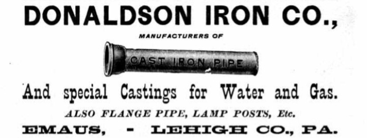 - Donaldson Iron Co. (cost of pipes sold to the Emmaus city water board), in “Bidders for City Contracts.” Allentown, Pennsylvania: The Allentown Democrat, 26 March 1895.