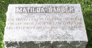 Matilda Barber used her own gravestone at the Oakwood Cemetery in Geneseo, Henry County, Illinois to document her two most important personal relationships (public domain).