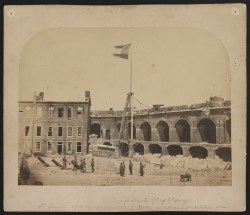 Confederate flag flying above Fort Sumter 16 April 1861 (Alma Pelot, U.S. Library of Congress, public domain).