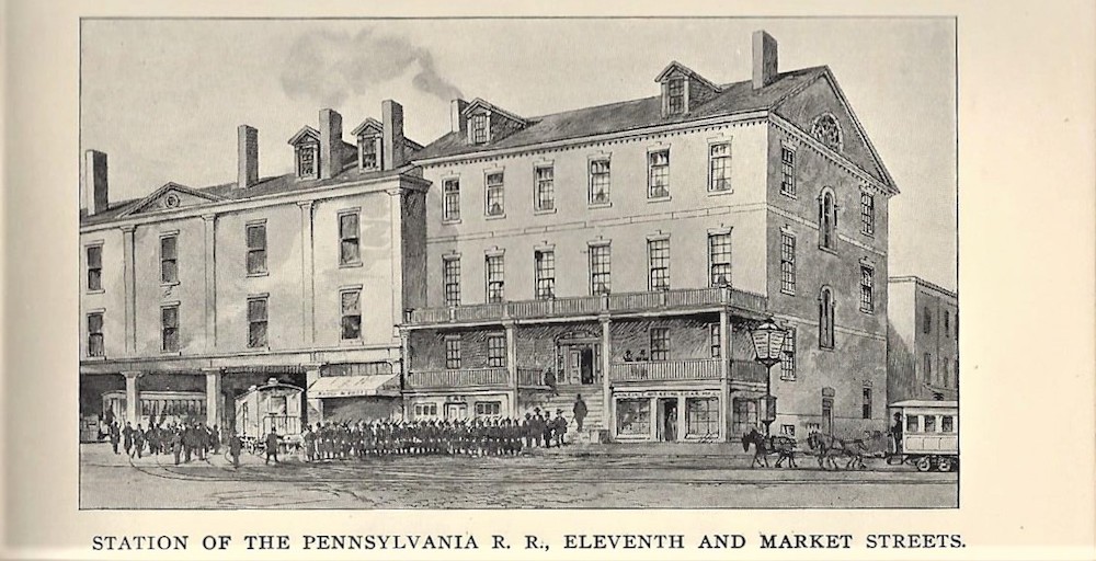 11th and Market Street Station, Philadelphia & Reading Railroad, circa 1861 (Frank H. Taylor, Philadelphia in the Civil War, 1913, public domain).