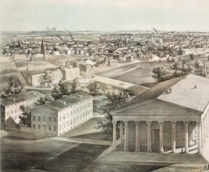 View from Girard College to Moyamensing and other South Philadelphia neighborhoods in Philadelphia, Pennsylvania, 1850 (John William Hill, Smith Brothers & Co., public domain).