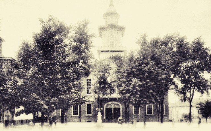 Hamilton Street, looking west from Center Square, Allentown, Pennsylvania, 1880 (public domain; click to enlarge).