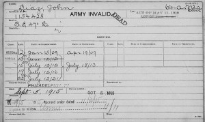 According to U.S. Veterans Administration Pension Payment Cards, Civil War veteran and naturalized American citizen John W. Diaz died on 5 September 1915. Described as retired on the New Jersey state census conducted on 1 July 1915, he was survived by his wife, Annie, and their children — Gustavus, Adolph, Frank, John Jr., Marcie, Anna, Herbert, and Philip — and their grandchildren — Anna Rose, Adolph, Charlotte and Gus Jr.