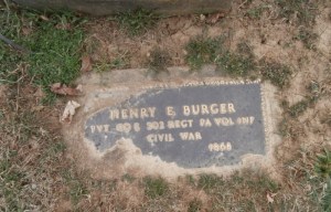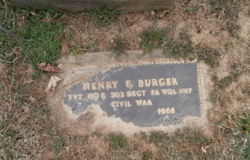 Replacement gravemarker for Private Henry E. Burger, 202nd Pennsylvania Volunteers, Union-West End Cemetery, Allentown, Pennsylvania (used with permission, courtesy of Jerry Haas).