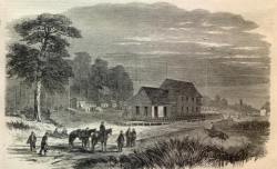 We arrived at Frampton (our first battle ground) at 8 p.m. Here my regiment was relieved from further rear-guard duty by the Fourth New Hampshire Regiment. This gave me the desired opportunity to carry my dead and wounded from the field and convey them back to the landing. I arrived at the above place at 3 o’clock the following morning.