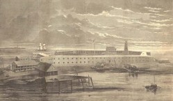 Ordered to move from their Virginia encampment back to Maryland, the 47th Pennsylvania Volunteers left Camp Griffin at 8:30 a.m. on Wednesday, 22 January 1862. Marching through deep mud with their equipment for three miles in order to reach the railroad station at Falls Church, they were then transported by rail to Alexandria, before traveling aboard the steamship City of Richmond along the Potomac River to the Washington Arsenal, where they were reequipped before being marched off for dinner and rest at the Soldiers’ Retreat in Washington, D.C. The next afternoon, the 47th Pennsylvanians hopped cars on the Baltimore & Ohio Railroad, and headed for Annapolis, Maryland. Arriving around 10 p.m., they were assigned quarters in barracks at the U.S. Naval Academy. They then spent that Friday through Monday (24-27 January 1862) loading their equipment and other supplies onto the steamship Oriental.