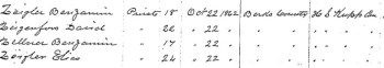 Fortunately, he had been allowed by Kistler to at least obtain some degree of education. According to the federal census of June 1860, “Benjn/.. Zoellner” had attended school within the past year. Kistler, meanwhile, had begun building his own family with a wife and two elementary school-aged daughters, and had also amassed real estate and personal property valued at thirty-six hundred dollars.