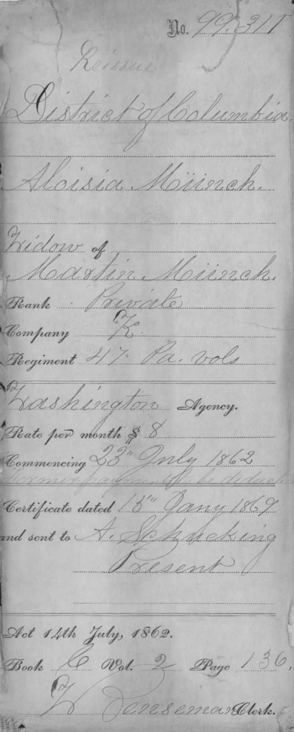Aloisia Munch_U.S. Civil War Widow’s Pension Claim_1868 Award Date and Amount, 15 Jan 1869_pubdom