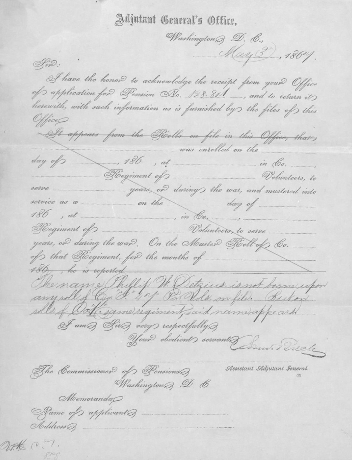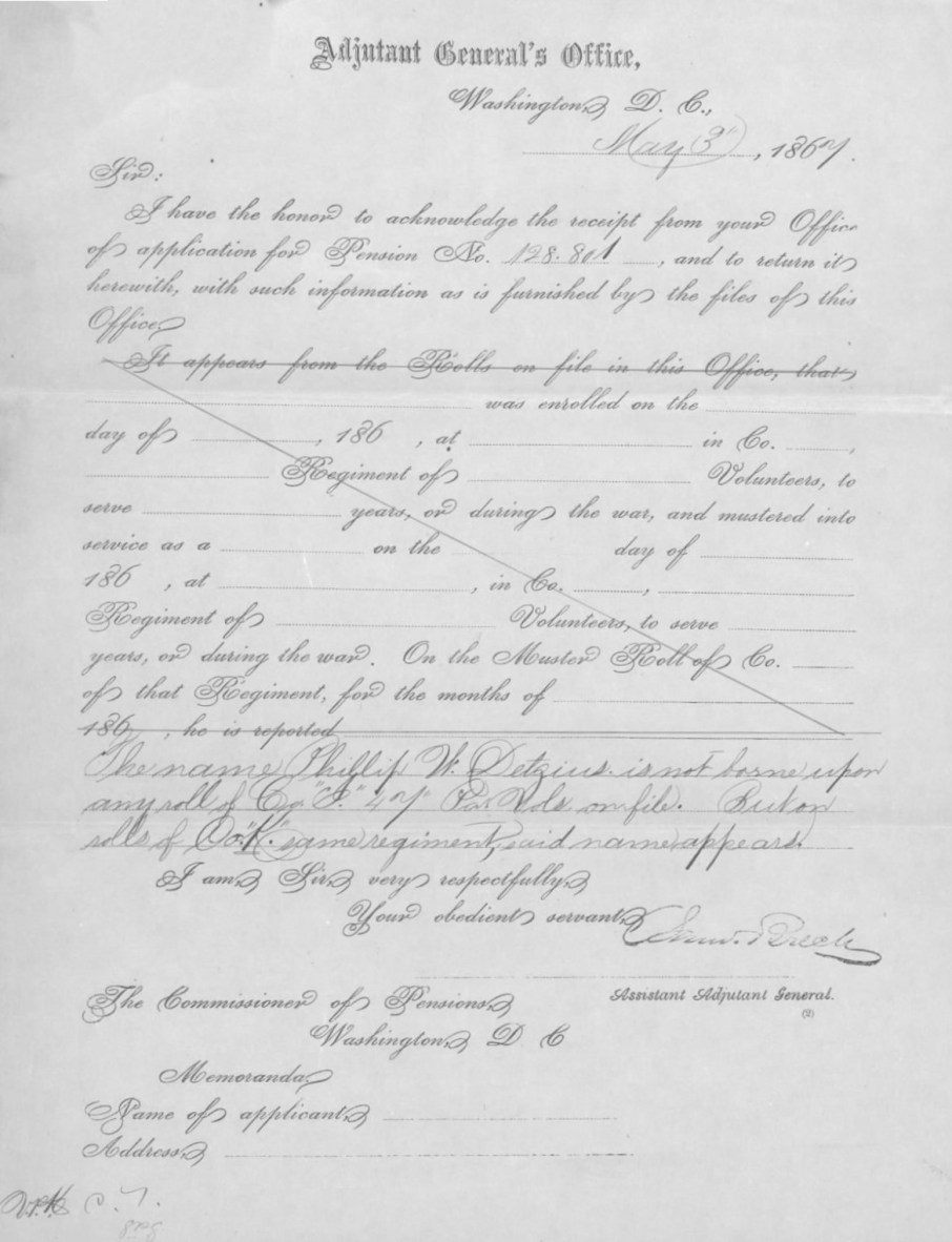 U.S. Adjutant General’s 5 May 1867 Communication re Military Svc of Philip Datzius