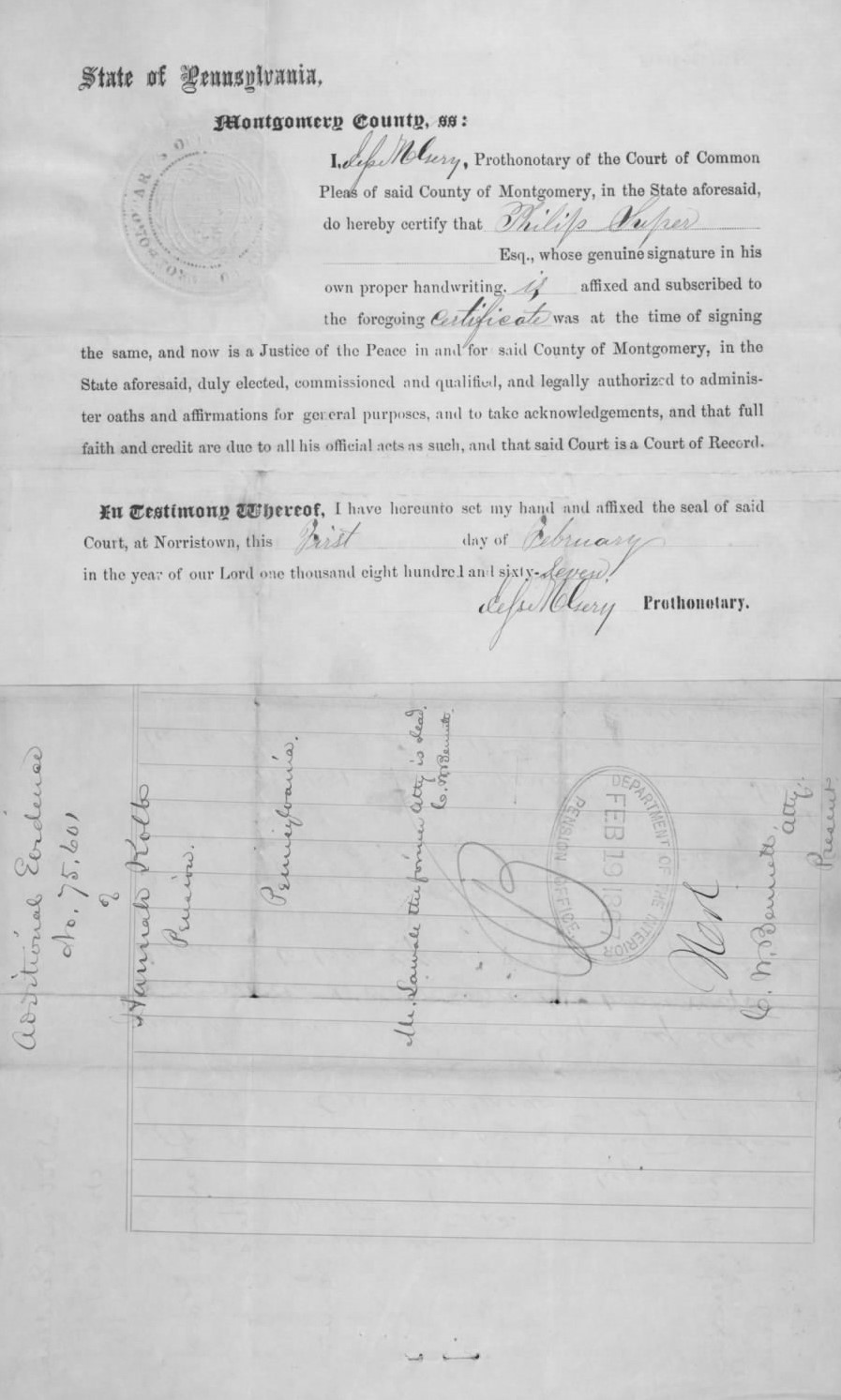 Hannah Kolb_U.S. Civil War Widow’s Pension Claim, Additional Evidence, 1 Feb 1867_cover_pubdom