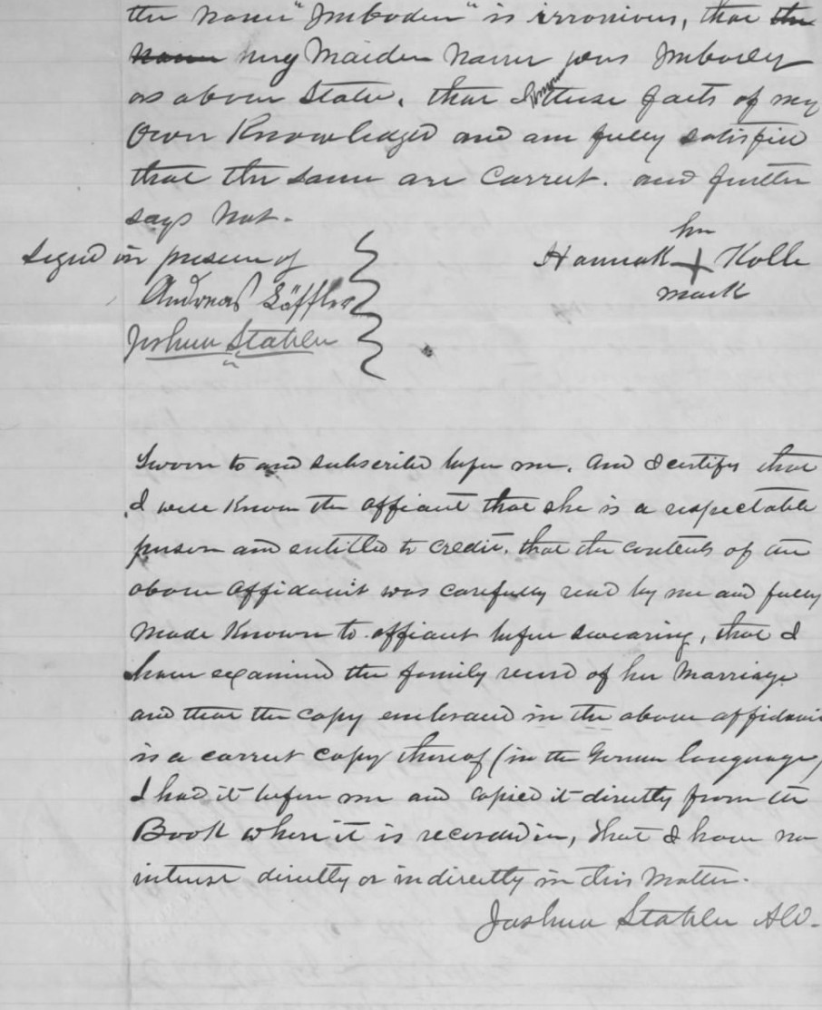 Hannah Kolb’s U.S. Civil War Widow’s Pension Claim (Hannah’s Affidavit, 1 February 1868, p. 2, U.S. Civil War Widows’ Pension Files, U.S. National Archives and Records Administration, public domain).