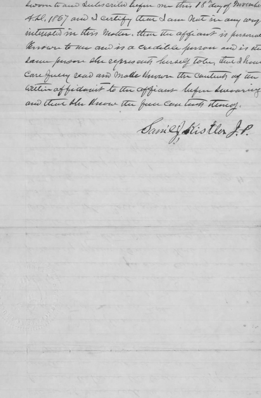Hannah Kolb_U.S. Civil War Widow’s Pension Claim, Hannah’s Nov 1867 Affidavit, p. 2