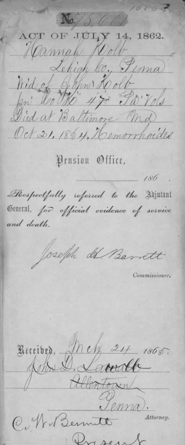 U.S. Pension Bureau’s Confirmation of Pvt. John Kolb’s 1864 Baltimore Hemorrhoid Death_pubdom