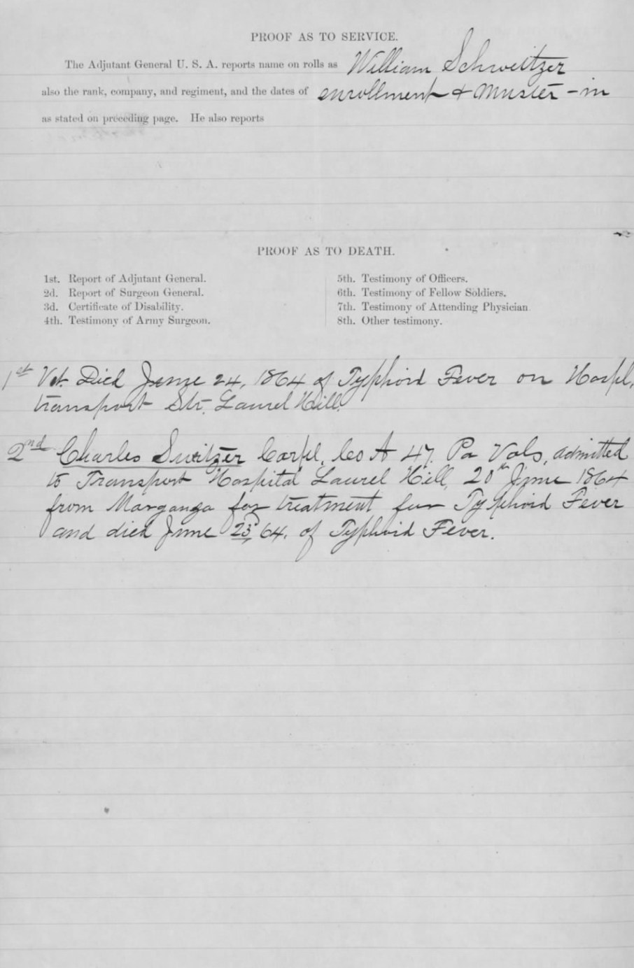 U.S. Civil War Mother’s Pension of Elizabeth Schweitzer (claim history form, p. 2, 1865-1870, U.S. Civil War Widows’ Pension Files, U.S. National Archives and Records Administration, public domain).