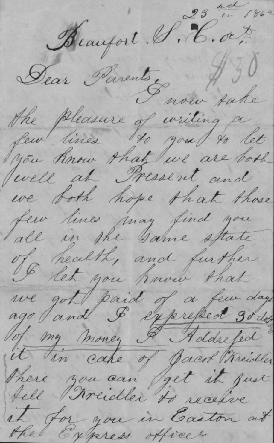 Corp. Wm. Schweitzer’s Letter to Parents, 23 Oct 1862, pp. 1-2_pubdom
