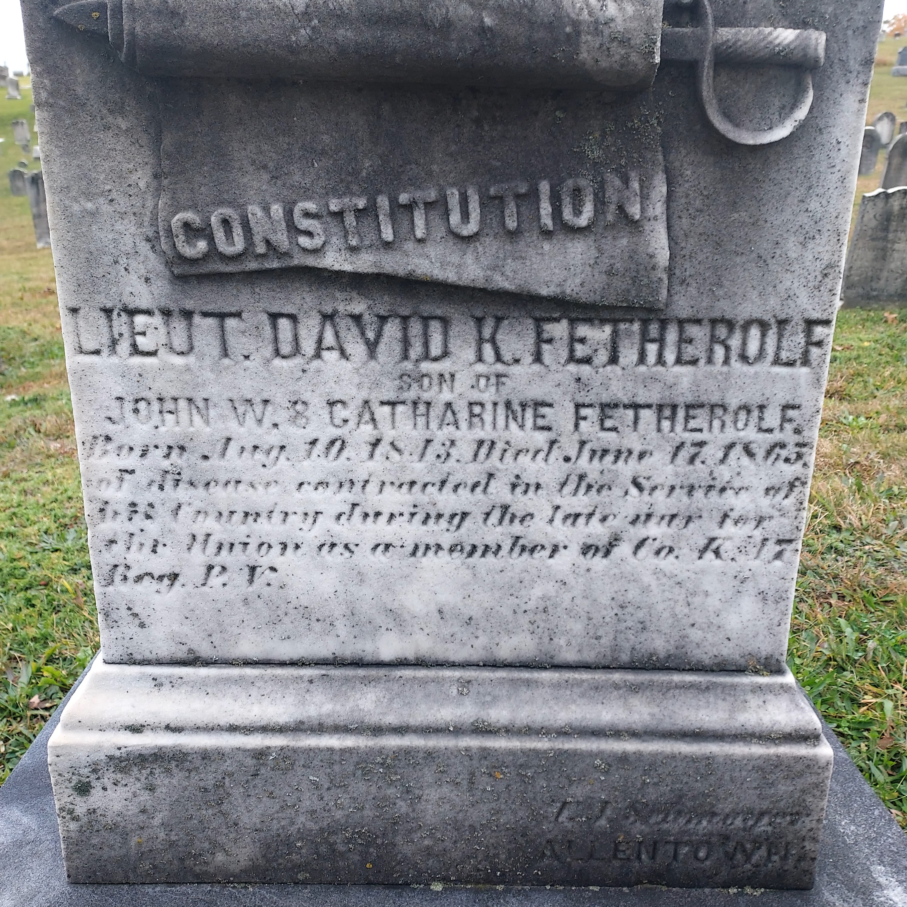 Lt. David K. Fetherolf, 47th PA, gravestone_front detail, v. 1_Heidelberg Union Cemetery, 10.21.2023_courtesy of Julian Burley