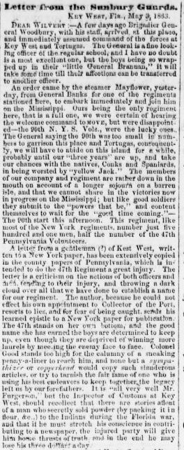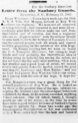Published in the Sunbury American, 7 March 1863. (Click on image for enlarged view of letter excerpt. Click HERE for full transcript.)