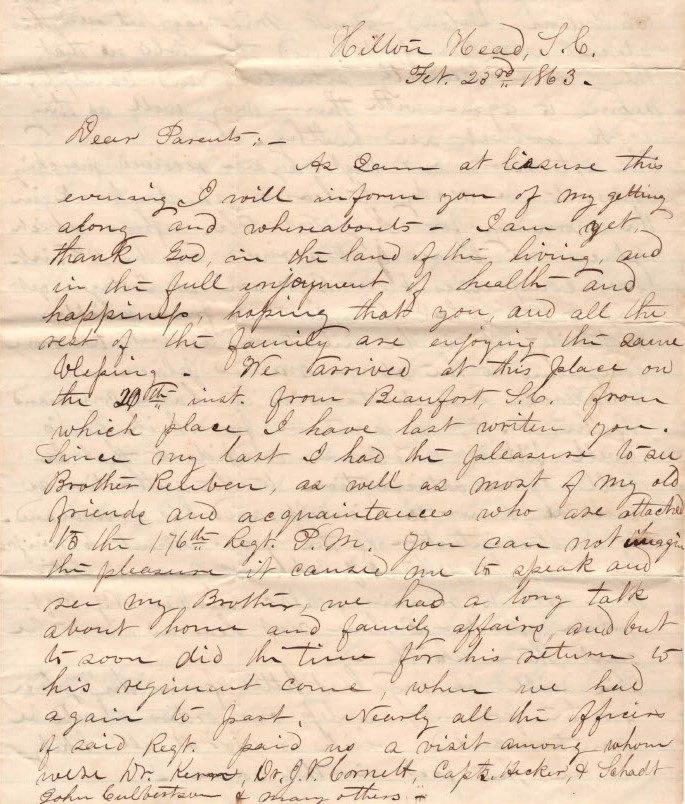 Note: The letters shown below were written by John Helfrich during the period of February 1 through November 18, 1863. For letters penned by John during prior and later years of his service, click on the link below for the year desired:
