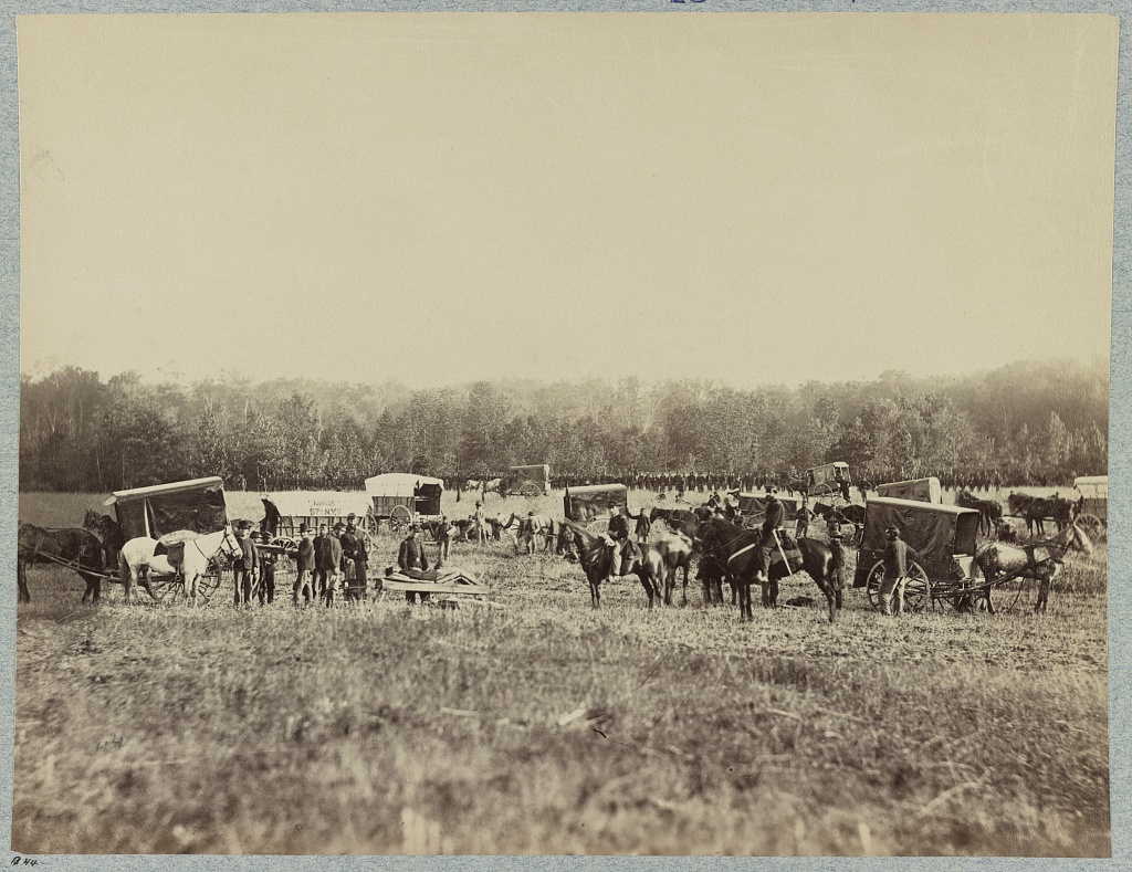 Ambulance train, Union 2nd Army Corps, 1st Division, 1861 (U.S. Library of Congress, public domain).