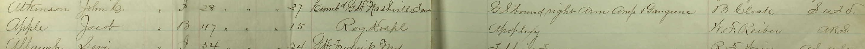 - William F. Reiber (as a Union army physician documenting the deaths of soldiers), in Registers of Deaths of Volunteers, U.S. Adjutant General’s Office. Washington, D.C.: U.S. National Archives and Records Administration, 1861-1865.