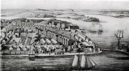 U.S. Naval Academy Barracks and temporary hospital, Annapolis, Maryland, circa 1861-1865 (public domain).