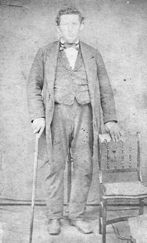 Daniel H. Gackenbach, a prosperous farmer and veteran E-flat tubaist of the 47th Pennsylvania Volunteers’ Regimental Band, shown standing with his cane, circa 1870 (public domain).