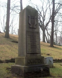 Obelisk marking the grave of Professor Thomas Coates, Easton Cemetery, Easton, Pennsylvania, 2004 (used with permission, courtesy of R.E.H.).