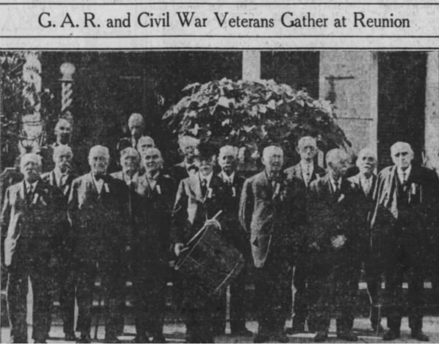 Daniel Dachrodt (center, with drum), 47th Pennsylvania Veteran Volunteers’ Annual Reunion, Allentown, Pennsylvania, 1930 (The Morning Call, 26 October 1930, public domain; click to enlarge).