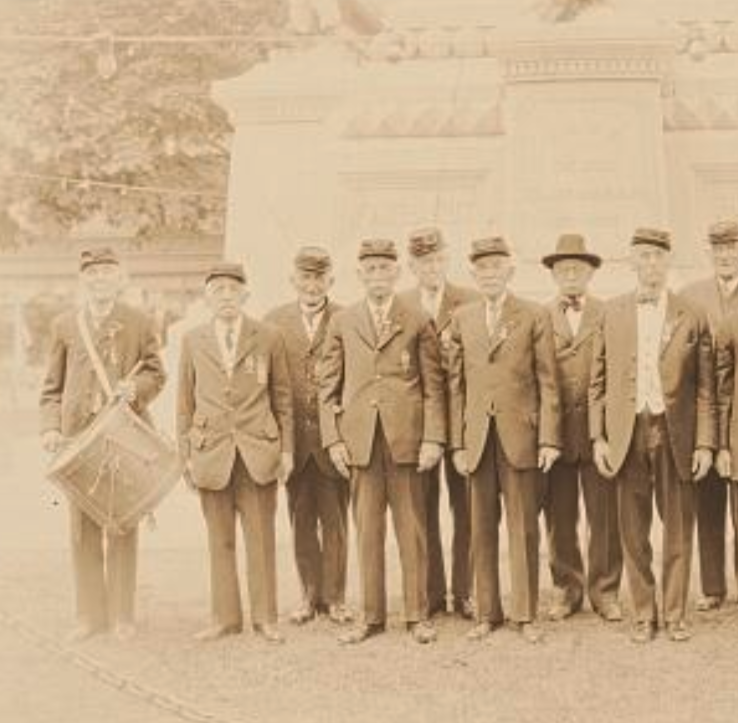 Daniel Dachrodt (left, with drum) and others of the Grand Army of the Republic’s Lafayette Post (Soldiers’ Home, Easton, Pennsylvania, circa 1930s, public domain).