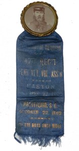 Once again, the annual reunion would be held on the anniversary of the Battle of Pocotaligo—the regiment’s first major combat experience. By August, the committee had been expanded to include: E. M. Bucher, J. Weiser Bucher, J. C. Irwin, J. K. Keefer, Samuel Miller, and Jacob Renn. Captain Daniel Oyster, the former commanding officer of Company C, had been appointed chairman of the planning committee, with Jared C. Irwin handling the duties of treasurer and Henry D. Wharton still serving as secretary. On 3 August, the committee met at Sunbury’s Clement House, the home of Ira T. Clement, who built Sunbury’s first sawmill. It was at this meeting that committee members decided to expand their ranks by adding Lieutenant James Van Dyke, the 47th Pennsylvania’s former Regimental Quartermaster, to their team, and also directed John Heim and J. K. Keefer to assume responsibility for the design and production of the reunion badges that would be given to attendees that year.