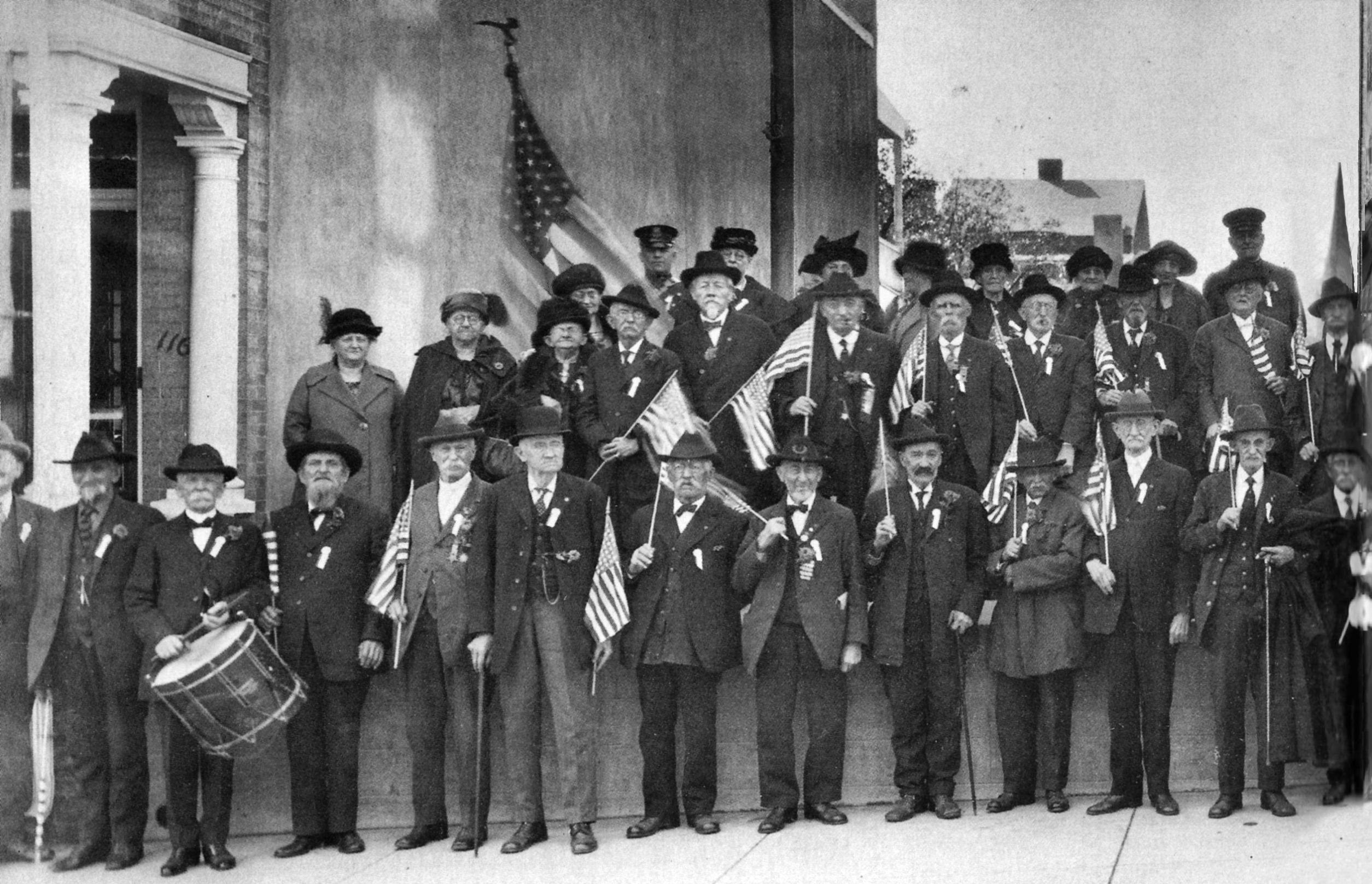 47th Pennsylvania Volunteers’ Annual Reunion, October 1923 (group left, I.O.O.F. building, Allentown, public domain; click to enlarge).