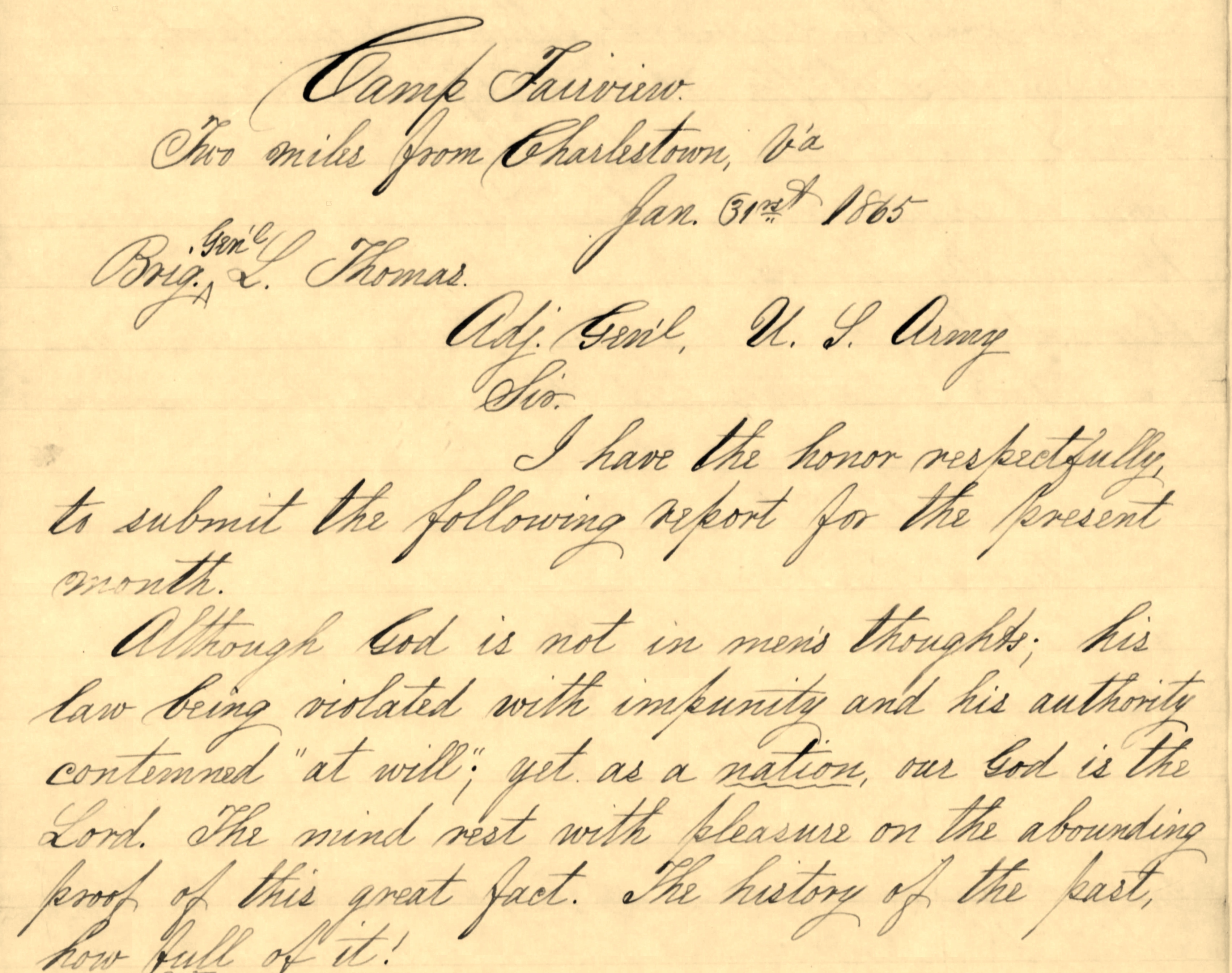 Excerpt of Rev. W. D. C. Rodrock’s 31 January 1865 chaplain’s report to Brigadier-General L. Thomas (U.S. National Archives, public domain).