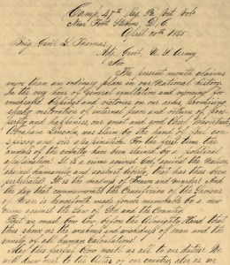 That the long, fierce terrible war is done; that victory crowns our banners; that slavery has been swept from the land, that happy hearth-stones and every thing [sic] that adorns civilized life will take the place of war’s glories in our National diadem….