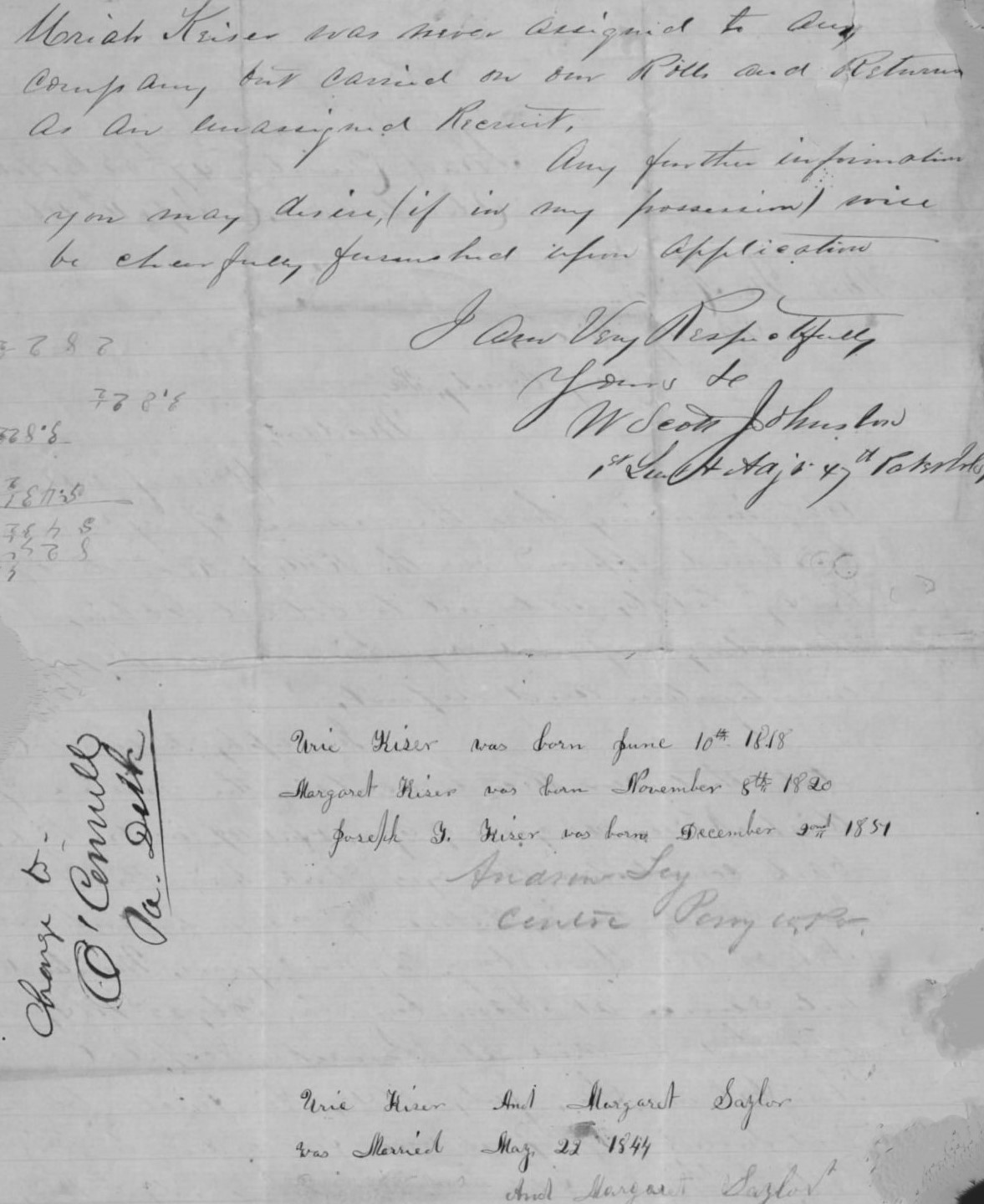 Attestation of Pvt. Uriah Keiser’s Death, Reg. Adj. W. Scott Johnston, 47th PA, 1865, p. 2