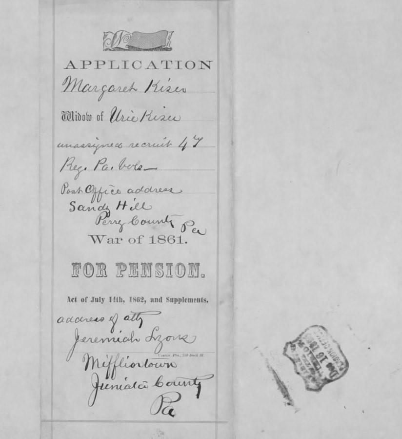 Margaret Sailor Keiser’s Claim for a U.S. Civil War Widows’ and Orphans’ Pension, 1864 (cover sheet, U.S. Civil War Widows’ Pension Files, U.S. National Archives and Records Administration, public domain).